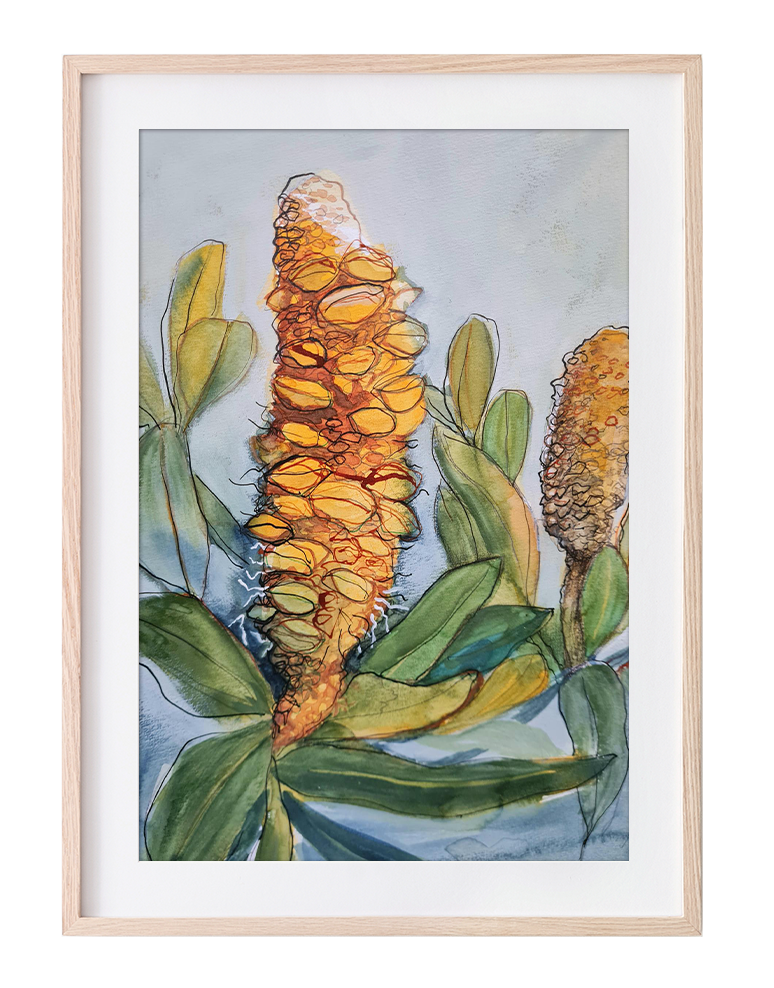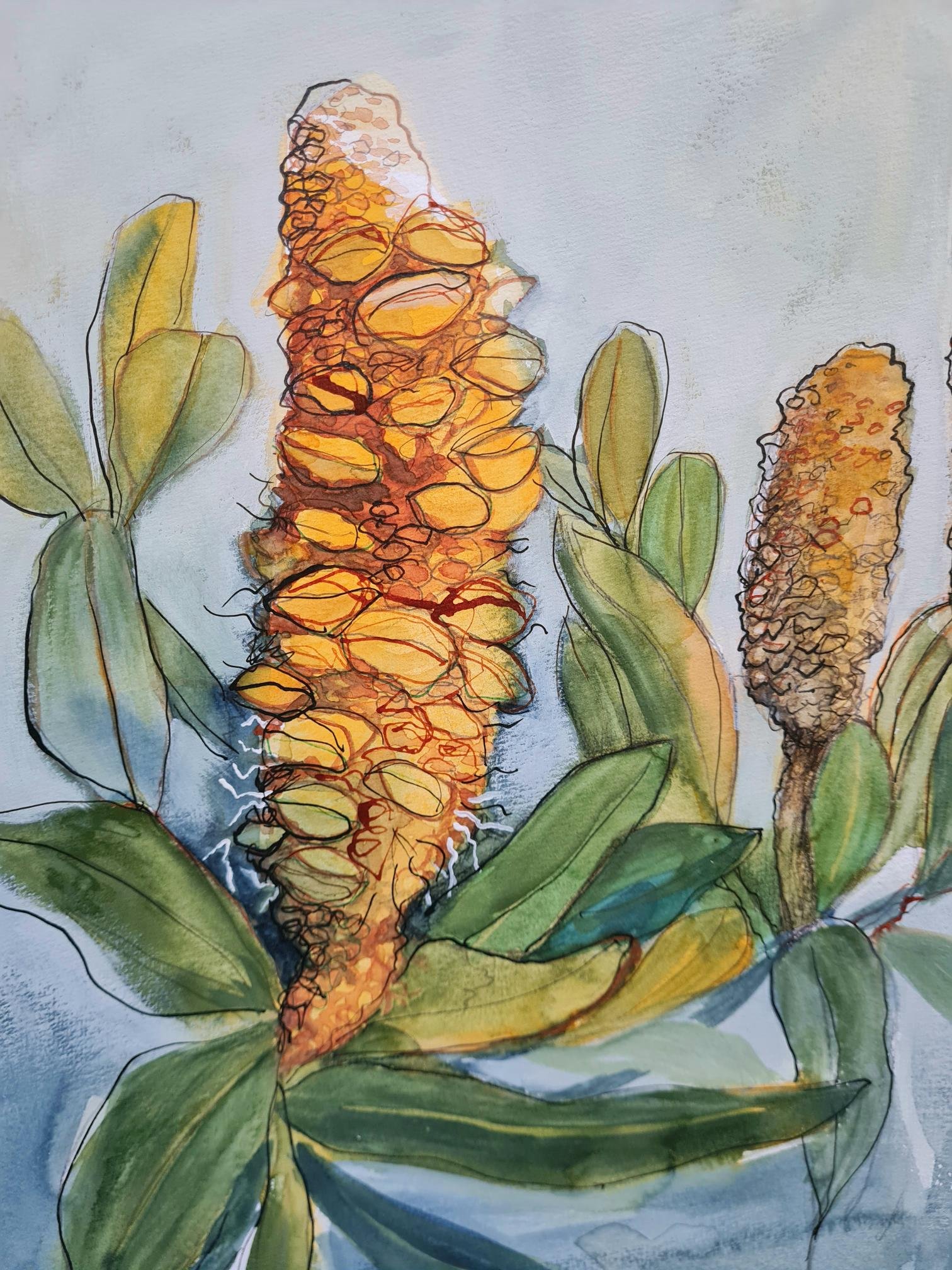 Banksia – Watercolour, ink and gouache on 300gsm watercolour paper. Unframed.